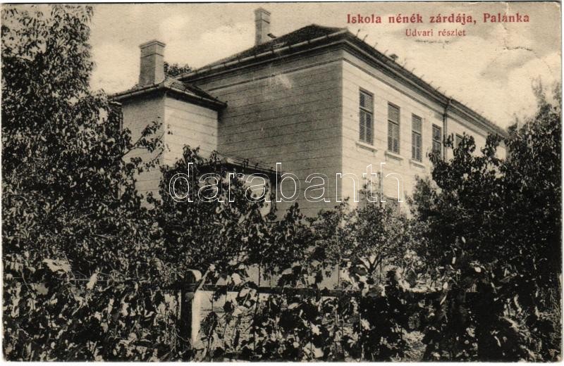 Palánka, Bácspalánka, Backa Palanka; Iskola nénék zárdája, udvari részlet. Hátoldalon Wágner a Hangszer-Király reklám / nunnery, boarding school, advertisement on the backside (b)