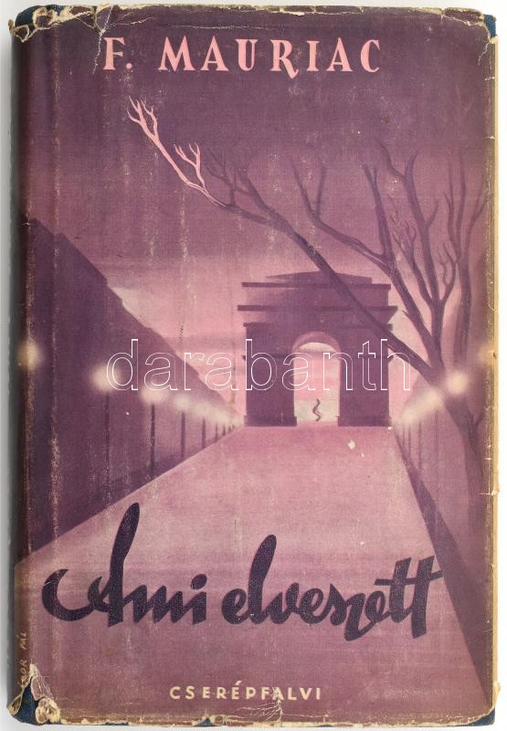 Francois Mauriac: Ami elveszett. Regény. Ford.: Just Béla. Bp.,[1941],Cserépfalvi. A borító Gábor Pál munkája. Kiadói aranyozott egészvászon-kötés, kiadói szakadt illusztrált papír védőborítóban.