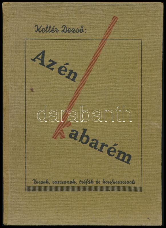 Kellér Dezső: Az én kabarém. (Versek, sanzonok, tréfák, konferanszok.) Kellér Dezső (1905-1986) humorista, író, konferanszié által dedikált és dátumozott! Bp., (1944), Springer Gusztáv, 63 p. Kiadói kartonált papírkötés, kissé sérült kötéssel. Első kiadás, számozatlan példány.