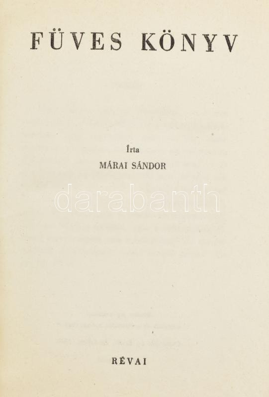 Márai Sándor: Füves könyv. Első kiadás! Bp.,1943, Révai. Kiadói félvás... https://www.darabanth.com/de/412-Fernauktion/412.0/Bucher/Bucher-Andere-kuriositaten~1000025/Marai-Sandor-Fuves-konyv-Elso-kiadas-Bp-1943-Revai-Kiadoi-felvaszon-kotes-Laza-k~II2571485