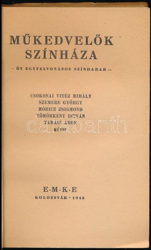 Műkedvelők színháza. Öt egyfelvonásos színdarab. Csokonai Vitéz Mihály... https://www.darabanth.com/de/412-Fernauktion/412.0/Bucher/Bucher-Andere-kuriositaten~1000025/Mukedvelok-szinhaza-Ot-egyfelvonasos-szindarab-Csokonai-Vitez-Mihaly-Szemere-Gyorgy-MC3~II2520205