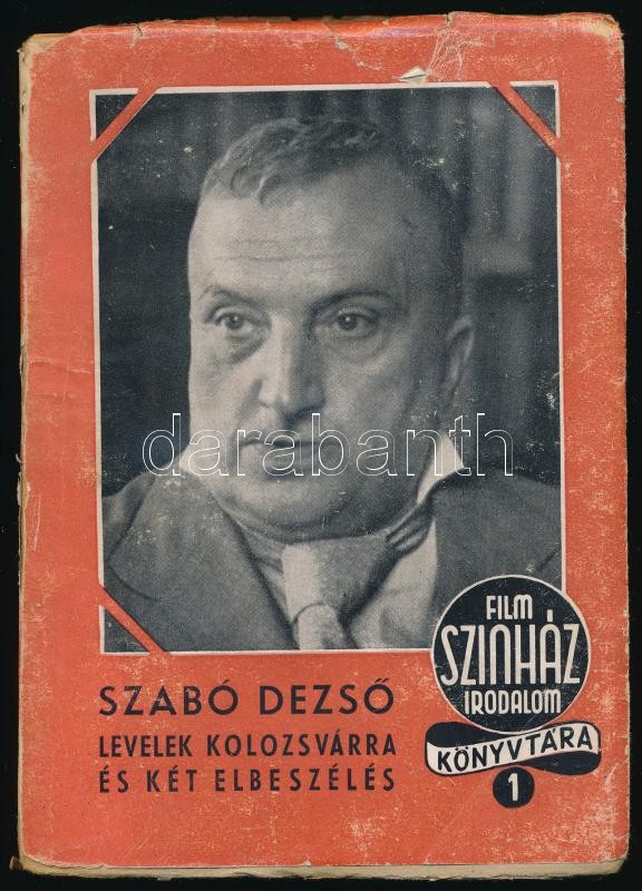 Szabó Dezső: Levelek Kolozsvárra és két elbeszélés. Film, Színház, Irodalom könyvtára 1. Bp.,[1943.], Keresztes,(Hellas-ny.), 229 p. Első kiadás. Kiadói illusztrált papírkötésben, kopott, szakadt borítóval, részben felvágatlan lapokkal.