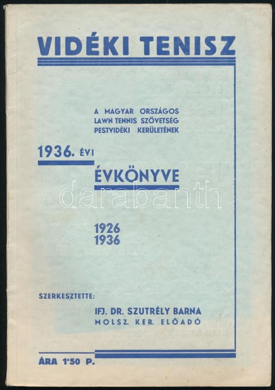 1936 Vidéki tenisz - a Magyar Lawn Tennis Szövetség pestvidéki kerület... https://www.darabanth.com/de/412-Fernauktion/412.0/Bucher/Bucher-Sport-Schach-Bergsteigen~1000005/1936-Videki-tenisz-a-Magyar-Lawn-Tennis-Szovetseg-pestvideki-keruletenek-1936-evi-evkony~II2568841