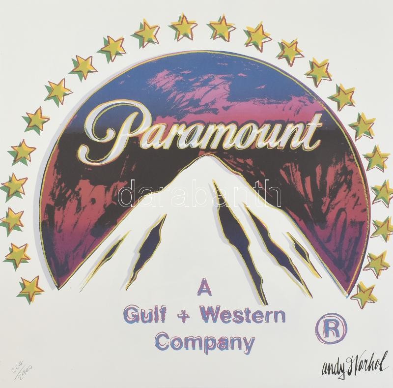 Andy Warhol (1928-1987): Paramount. Granolitográfia, papír, jelzett a nyomaton. Számozott: 224/2400. Hátoldalán CMOA (Carnegie Museum of Art) bélyegzővel és hologramos grafy.blog matricával. 60x60 cm/ Granolithography on paper. Numbered: 1656/2400. With CMOA (Carnegie Museum of Art) stamp on the reverse. 60x60 cm