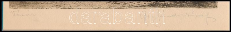 Beschreibung: Gy. Sándor József (1887-1936): Vásár. Rézkarc, papír, jelzett, paszpartuban, 14,5x18 cm
