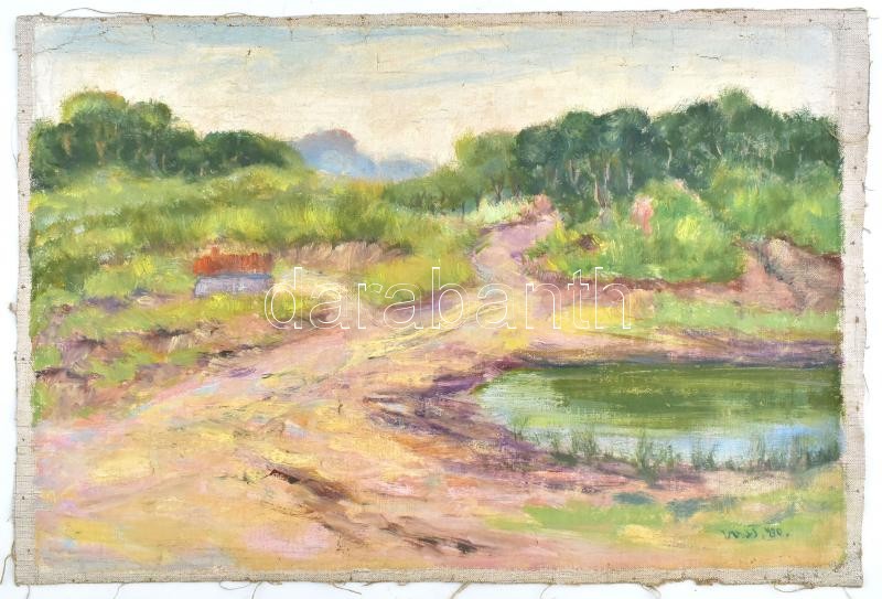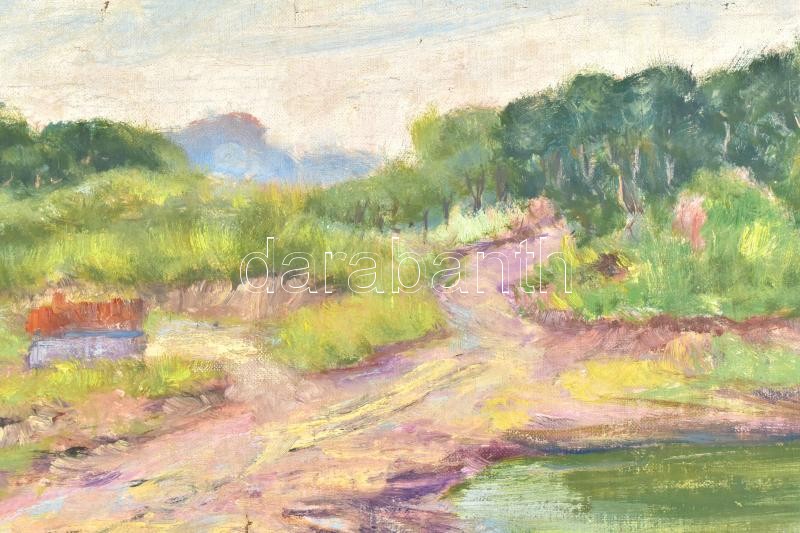 Beschreibung: Vass Elemér (1887-1957): Vízparti táj, 1930. Olaj, vászon. Jelzett. Vakráma nélkül. Kissé sérült. 39x57 cm