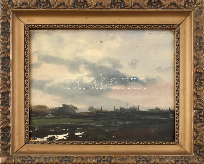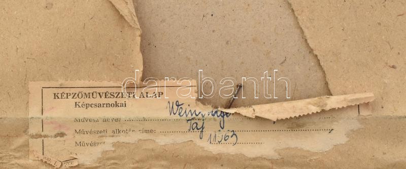 Weintrager Adolf (1927-1987): Táj, 1954. Akvarell, papír. Jelzett. Hátoldalán Képcsarnok Vállalat sérült címkéjével. Dekoratív, sérült üvegezett fa keretben. 32x39 cm
