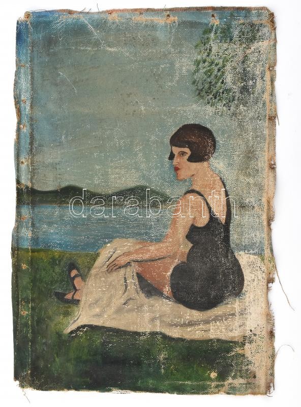 Beschreibung: Jelzés nélkül: A Balaton szépe. Olaj, vászon. Vakráma nélkül. Sérült. 45,5x33 cm