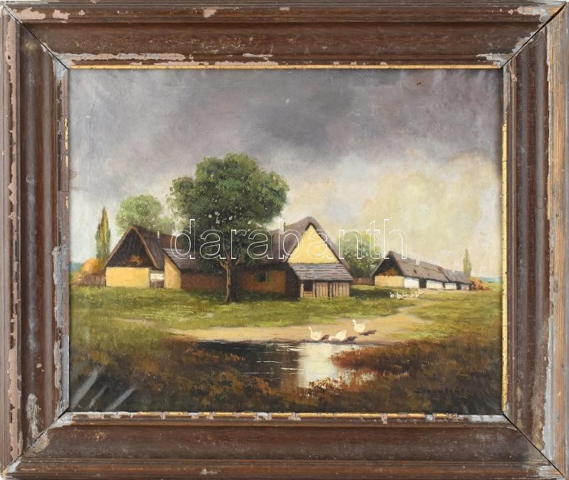 Szentgály jelzéssel: Tanya. Olaj, vászon, javított. Sérült fa keretben... https://www.darabanth.com/de/412-Fernauktion/412.0/Gemalde-und-Grafiken/Gemalde-und-Graphic-quot-signiertquot-quot-ohne-Signquot-~500002/Szentgaly-jelzessel-Tanya-Olaj-vaszon-javitott-Serult-fa-keretben-40x50-cm~II2531023