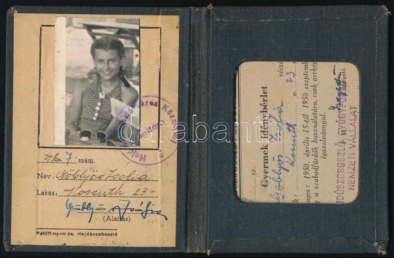 1950 Hajdúszoboszló Gyógyfürdő bérletigazolvány https://www.darabanth.com/de/412-Fernauktion/412.0/Kunst-Dokumente-andere-Sammelgebiete/Dokument~500018/1950-Hajduszoboszlo-Gyogyfurdo-berletigazolvany~II2564747