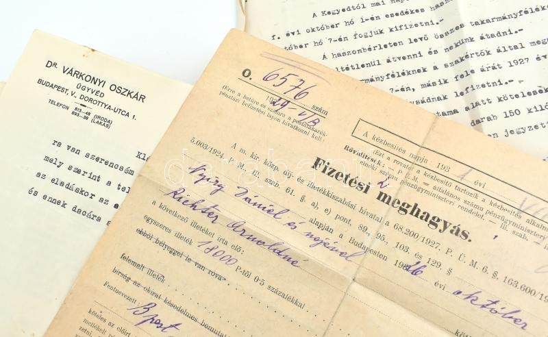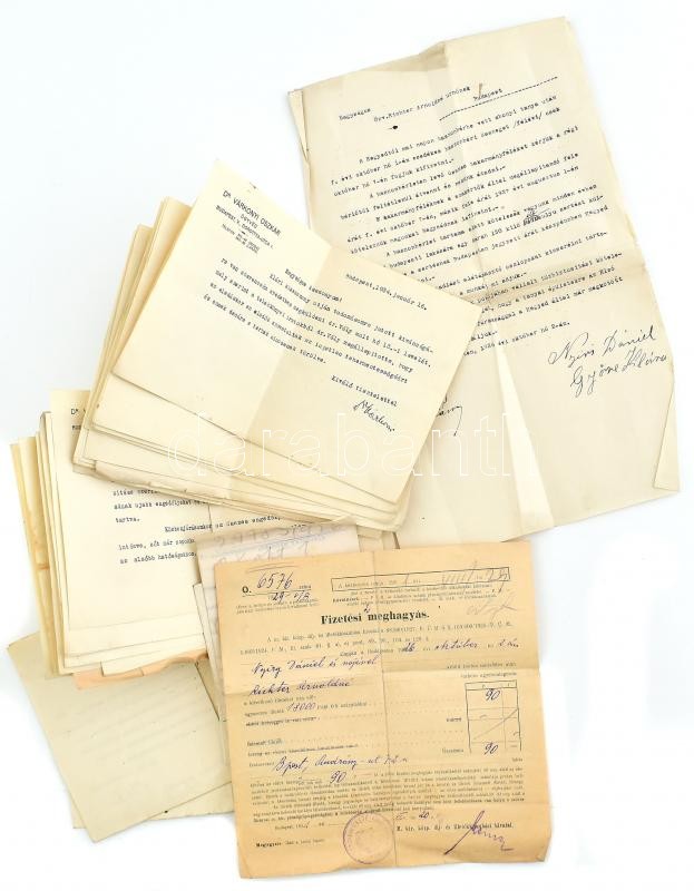 cca 1930 Fejléces nyomtatott ügyvédi papírok, dr. Várkonyi Oszkár Doro... https://www.darabanth.com/de/412-Fernauktion/412.0/Kunst-Dokumente-andere-Sammelgebiete/Dokument~500018/cca-1930-Fejleces-nyomtatott-ugyvedi-papirok-dr-Varkonyi-Oszkar-Dorottya-u-ossz-55-db~II2564786