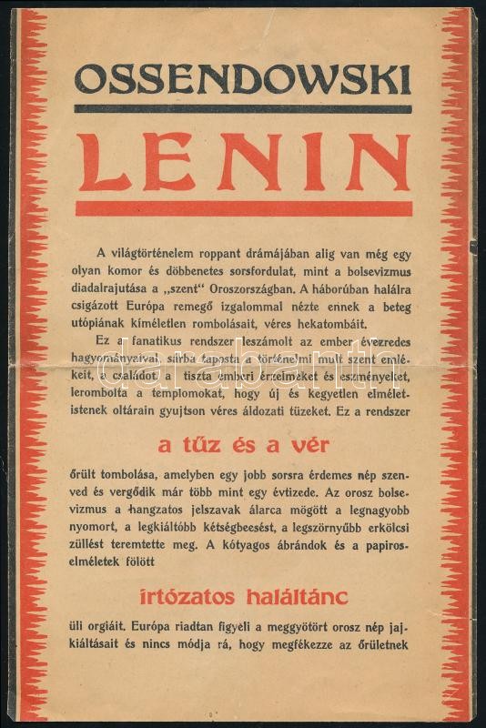 1930 Ossendowski: Lenin, könyvismertető Lenin és a Cseka rémtetteiről,... https://www.darabanth.com/de/412-Fernauktion/412.0/Kunst-Dokumente-andere-Sammelgebiete/Drucksachen~2000093/1930-Ossendowski-Lenin-konyvismerteto-Lenin-es-a-Cseka-remtetteirol-hajtott-ragasztott-4p~II2566465