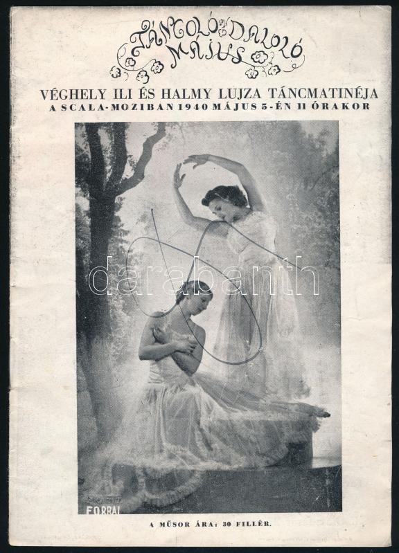 1940 Véghely Ili és Halmy Lujza táncmatinéja a Scala-Moziban 1940. május 5. 11 óra. Bp., Officina, műsorfüzet fekete-fehér fotókkal, a borítón firkával, 4 sztl. lev.
