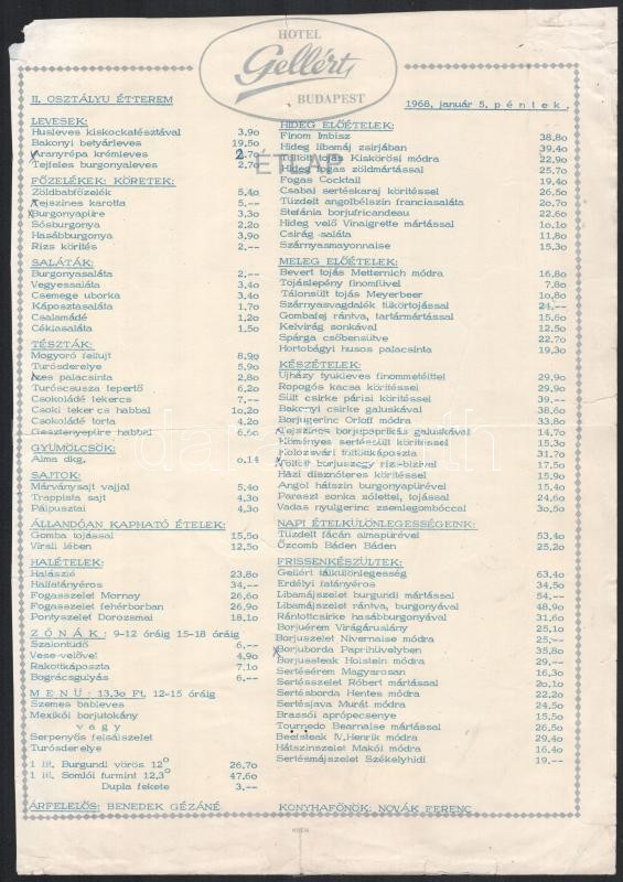 1967-1968 Hotel Gellért étlapja, 3 db https://www.darabanth.com/de/412-Fernauktion/412.0/Kunst-Dokumente-andere-Sammelgebiete/Drucksachen~2000093/1967-1968-Hotel-Gellert-etlapja-3-db~II2568722