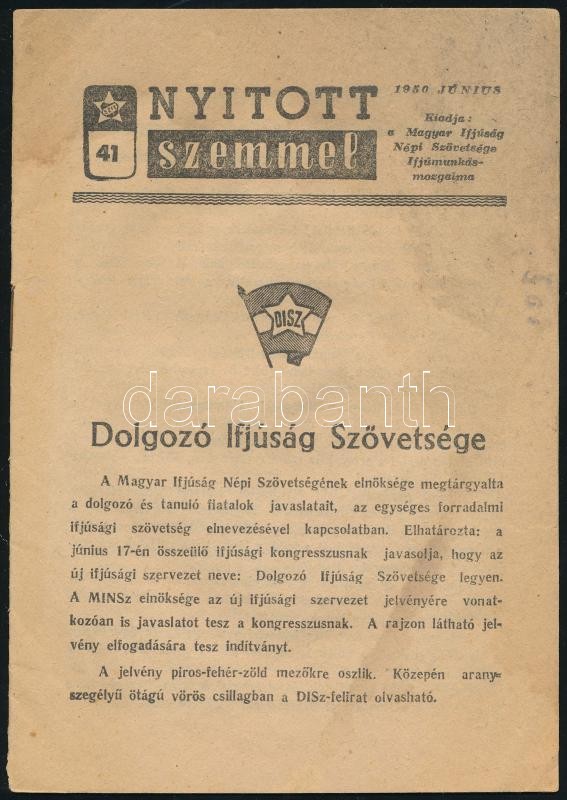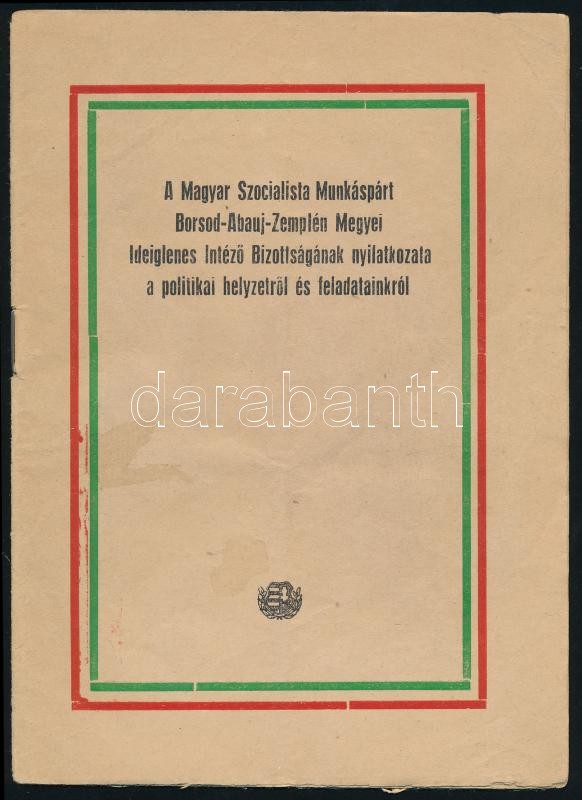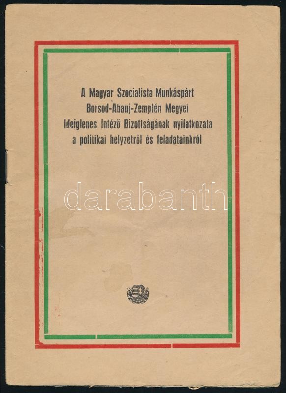 cca 1950-1960 3 db propaganda kiadvány (Üzemi kollektív szerződés, Nyi... https://www.darabanth.com/de/412-Fernauktion/412.0/Kunst-Dokumente-andere-Sammelgebiete/Drucksachen~2000093/cca-1950-1960-3-db-propaganda-kiadvany-Uzemi-kollektiv-szerzodes-Nyitott-szemmel-Magyar-Szoc~II2566504