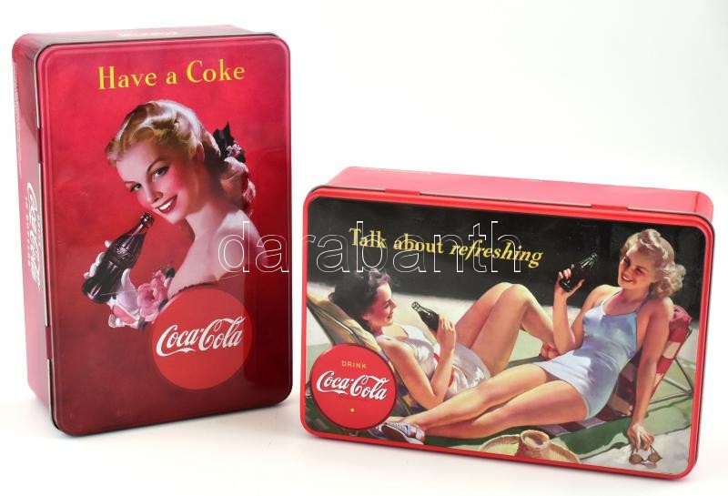 Beschreibung: 2db Coca Cola pléh doboz, kopásnyomokkal, 20x13x8cm