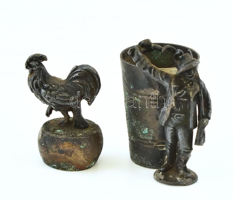 Beschreibung: 2db ón figurális tétel, kakas boros dugó, figurális fogvájótartó, jelzés nélkül, m:4,5-6cm