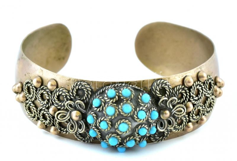 Keleti ezüstözött türkizes karperec. https://www.darabanth.com/de/412-Fernauktion/412.0/Kunst-Dokumente-andere-Sammelgebiete/Flohmarkt~500012/Keleti-ezustozott-turkizes-karperec~II2569650