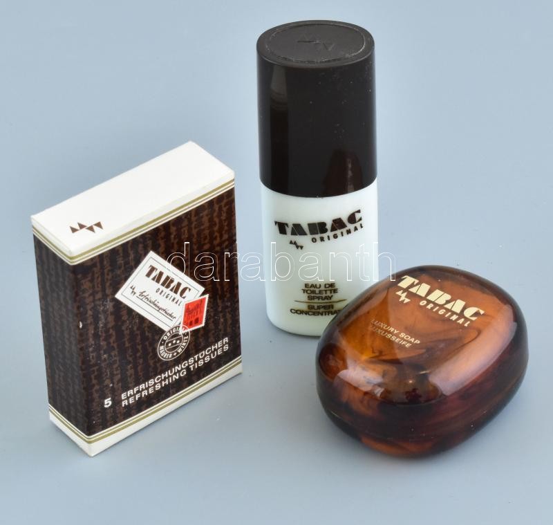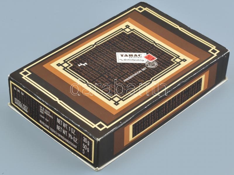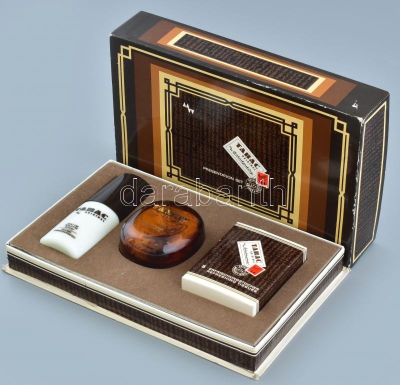 Tabac férfi tisztálkodási csomag, kölni, szappan frissítő kendő. doboz... https://www.darabanth.com/de/412-Fernauktion/412.0/Kunst-Dokumente-andere-Sammelgebiete/Flohmarkt~500012/Tabac-ferfi-tisztalkodasi-csomag-kolni-szappan-frissito-kendo-dobozban-23x15cm~II2571573