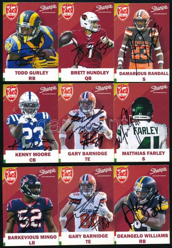 Amerikai futball játékosok aláírása kártyákon, 9 db https://www.darabanth.com/de/412-Fernauktion/412.0/Kunst-Dokumente-andere-Sammelgebiete/Signatur~500020/Amerikai-futball-jatekosok-alairasa-kartyakon-9-db~II2563723