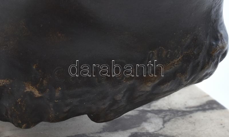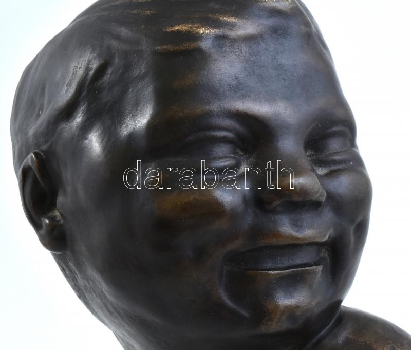 Carl Gelles (1880-1930): Nevető fiúcska fej. Bronz, márvány talpazaton. Bronz 21 cm, márvánnyal együtt 31 cm. / Austrian sculptor Carl Gelles (1880-1930): Laughing head. Bronze. Signed h: 21 cm with marble pedestal 31 cm.