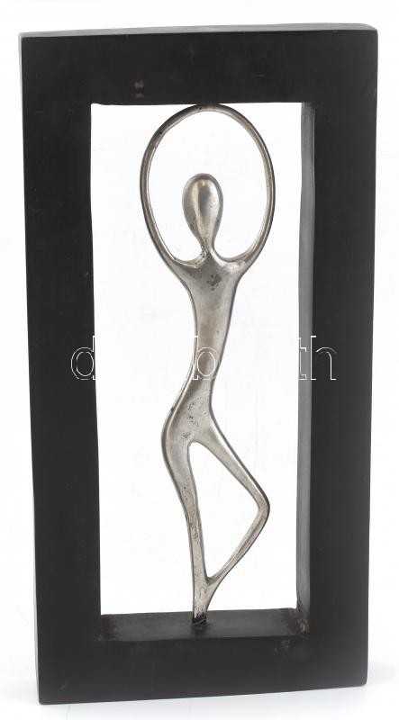 Beschreibung: Jelzés nélkül: Balerina, art deco szobor, fém, fa keretben (falra akasztható), figurán kis folt, kereten repedés, 33x16,5 cm