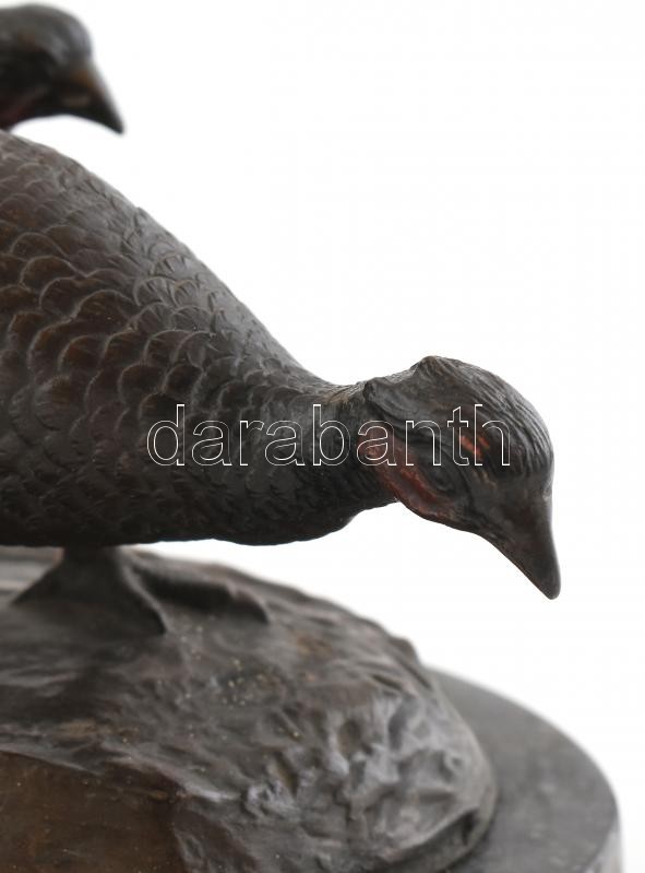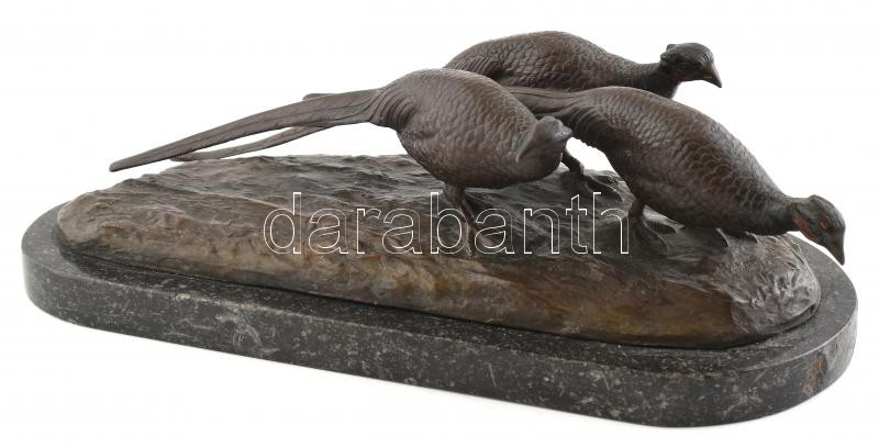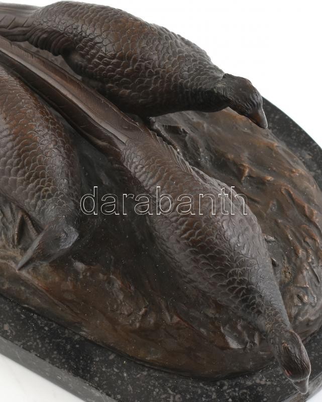 Jelzés nélkül: Fácánok. Öntött, patinázott bronz, márvány talapzaton, 30,5x16x10cm