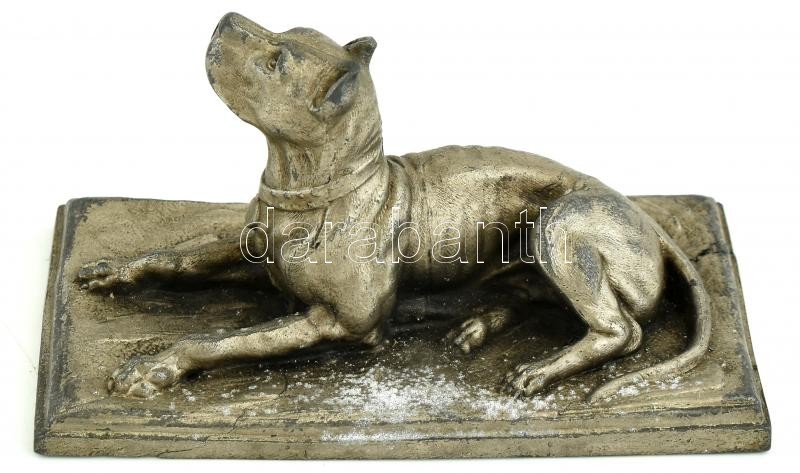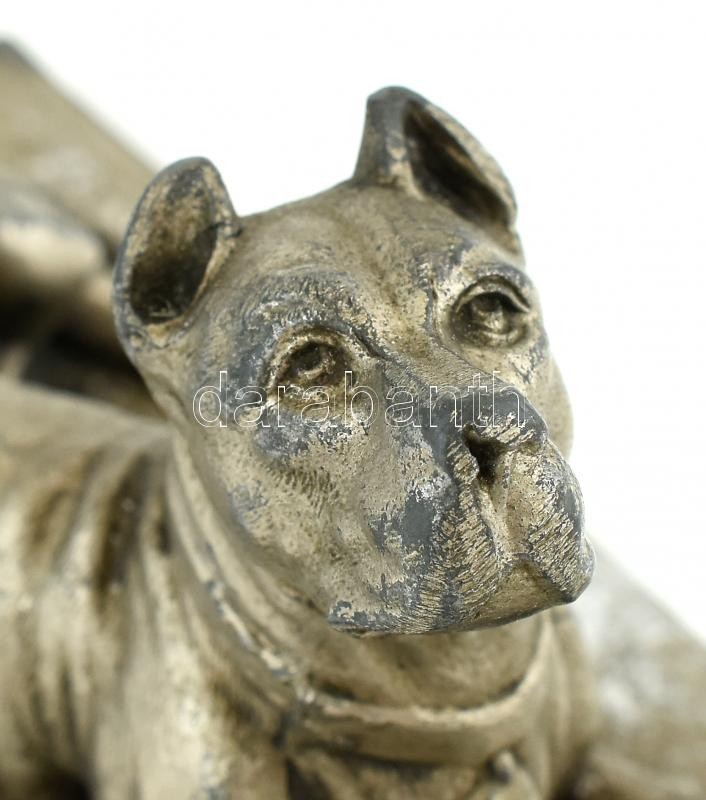 Kutya szobor, fém szobor. Sérüléssel a talapzaton. 13x6,5 cm https://www.darabanth.com/de/412-Fernauktion/412.0/Kunst-Dokumente-andere-Sammelgebiete/Skulpturen-Statuetten-Plaketten~500009/Kutya-szobor-fem-szobor-Serulessel-a-talapzaton-13x6-5-cm~II2538185