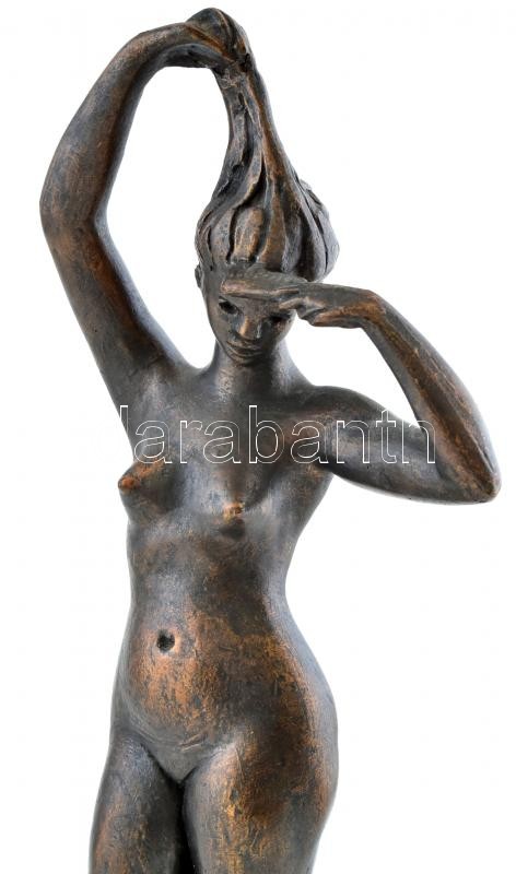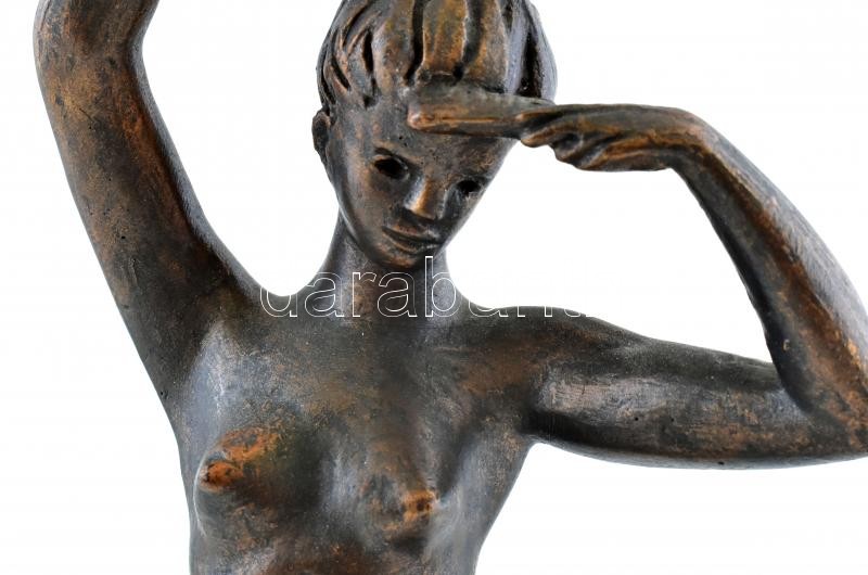 Beschreibung: Turcsányi Árpád (1921-1998): Akt. Bronzírozott műanyag fa talapzaton, képcsarnokos címkével, hibátlan, jelzett, m:38cm