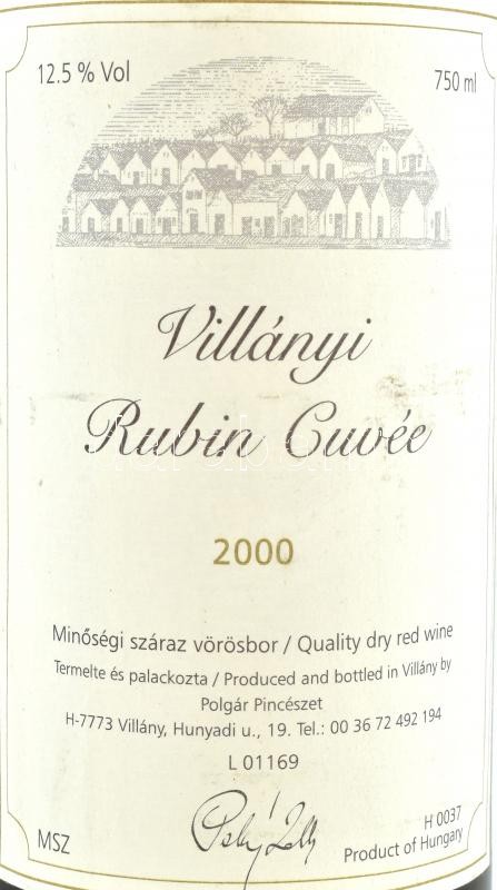 2000 Polgár Villányi Rubin Cuvée, bontatlan palack száraz vörösbor,sza... https://www.darabanth.com/de/412-Fernauktion/412.0/Kunst-Dokumente-andere-Sammelgebiete/Vintage-Weine-Getranke~500015/2000-Polgar-Villanyi-Rubin-Cuvee-bontatlan-palack-szaraz-vorosbor-szakszeruen-tarolt-12-5~II2565936