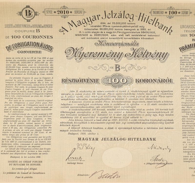 Budapest 1906. "A Magyar Jelzálog-Hitelbank" nyereménykötvén... https://www.darabanth.com/de/412-Fernauktion/412.0/Numismatik/Aktien-und-Tickets~1500006/Budapest-1906-A-Magyar-Jelzalog-Hitelbank-nyeremenykotveny-100K-rol-5x-A-es-B-sorozat~II2573446
