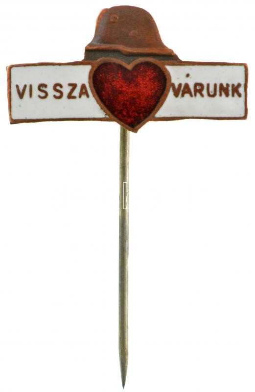 ~1940. "Vissza várunk" zománcozott fém jelvény T:2 https://www.darabanth.com/de/412-Fernauktion/412.0/Numismatik/Militaria~1500024/7E1940-Vissza-varunk-zomancozott-fem-jelveny-T2~II2566800