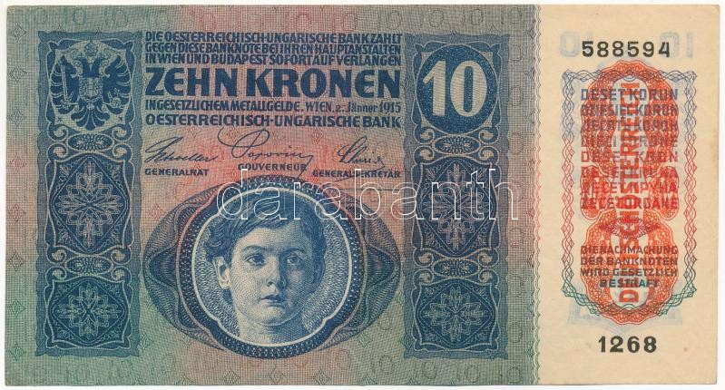 Hungary 1915. 10 K... https://www.darabanth.com/de/412-Fernauktion/412.0/Numismatik/Ungarische-Banknoten~1500008/1915-10K-1268-588594-TIII-szep-papir-Hungary-1915-10-Korona-1268-588594-CF-fine-paper-Ad~II2564280