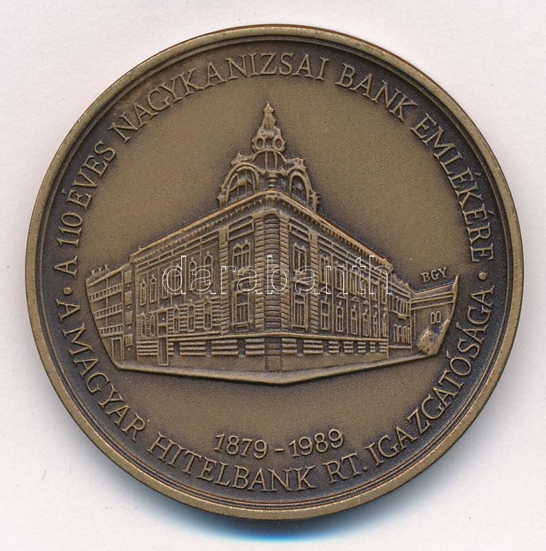 Bognár György (1944-) 1989. "A 110 éves Nagykanizsai Bank emlékére - A Magyar Hitelbank Rt. igazgatósága / Gróf Széchenyi István" bronz emlékérem (42,5mm) T:1-