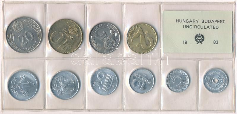 1983. 2f-20Ft (10xklf) érmés forgalmi sor fóliatokban T:1 Adamo FO16 https://www.darabanth.com/de/412-Fernauktion/412.0/Numismatik/Ungarische-Munzen-und-Munzen-mit-ungarischem-Munzzeichen~1500009/1983-2f-20Ft-10xklf-ermes-forgalmi-sor-foliatokban-T1-Adamo-FO16~II2572868
