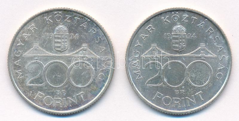 1994. 200Ft Ag "Deák" (2x) T:1-,2 Adamo F13 https://www.darabanth.com/de/412-Fernauktion/412.0/Numismatik/Ungarische-Munzen-und-Munzen-mit-ungarischem-Munzzeichen~1500009/1994-200Ft-Ag-Deak-2x-T1-2-Adamo-F13~II2563883