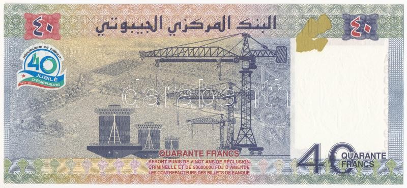 Beschreibung: Dzsibuti 2017. 40Fr "Függetlenség 40. évfordulója" T:I Djibouti 2017. 40 Francs "40th Anniversary of Independence" C:UNC Krause P#46
