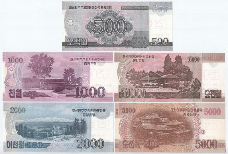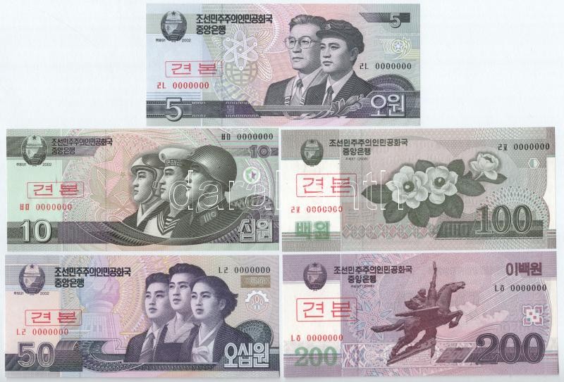 Észak-Korea 2002-2013. 5W-5000W (10xklf) MINTA felülnyomással és "0000000"-ás sorszámmal T:I