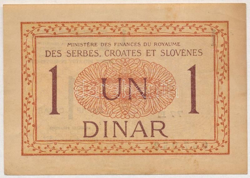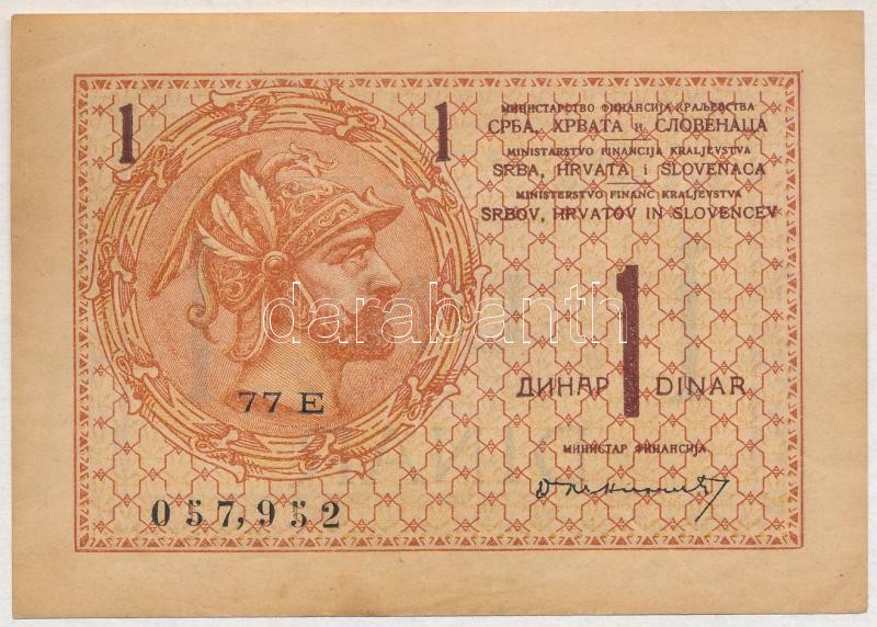 Beschreibung: Szerb-Horvát-Szlovén Királyság 1919. 1D "77E 057952" T:I-,II hajtatlan