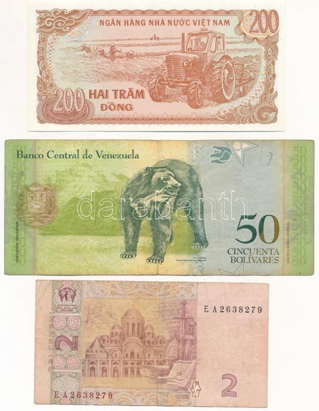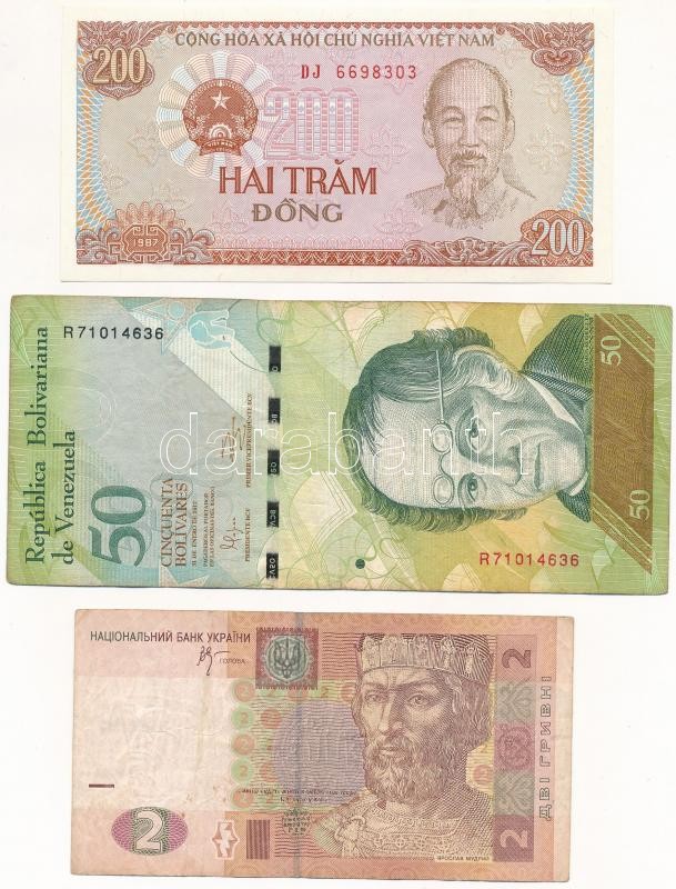 Beschreibung: Vegyes: Olaszország / Velence / Osztrák-magyar megszállás 1918. 2L + Indonézia 2015. 2000R + 2016. 2000R + Ukrajna 2005. 2Hr + Venezuela 2012. 50B + Vietnam 1987. 200D T:I-,III
