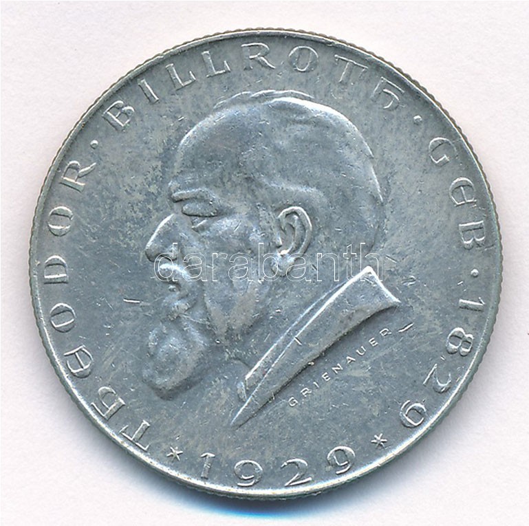 Ausztria 1929. 2Sch Ag "Dr. Theodor Billroth születésének 100. évfordulója" T:2 kis patina Austria 1929. 2 Schilling Ag "100th Anniversary - Birth of Dr. Theodor Billroth" C:XF small patina Krause KM#2844