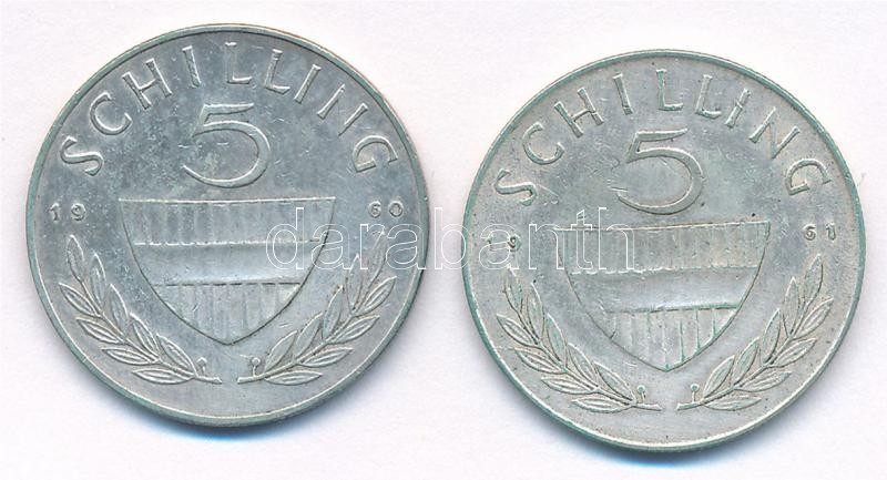 Ausztria 1960-1961. 5Sch Ag (2x) T:2 Austria 1960-1961. 5Sch Ag (2x) C... https://www.darabanth.com/de/412-Fernauktion/412.0/Numismatik/Weltweit-Munzen~1500014/Ausztria-1960-1961-5Sch-Ag-2x-T2-Austria-1960-1961-5Sch-Ag-2x-CXF-Krause-KM23-2889~II2568003