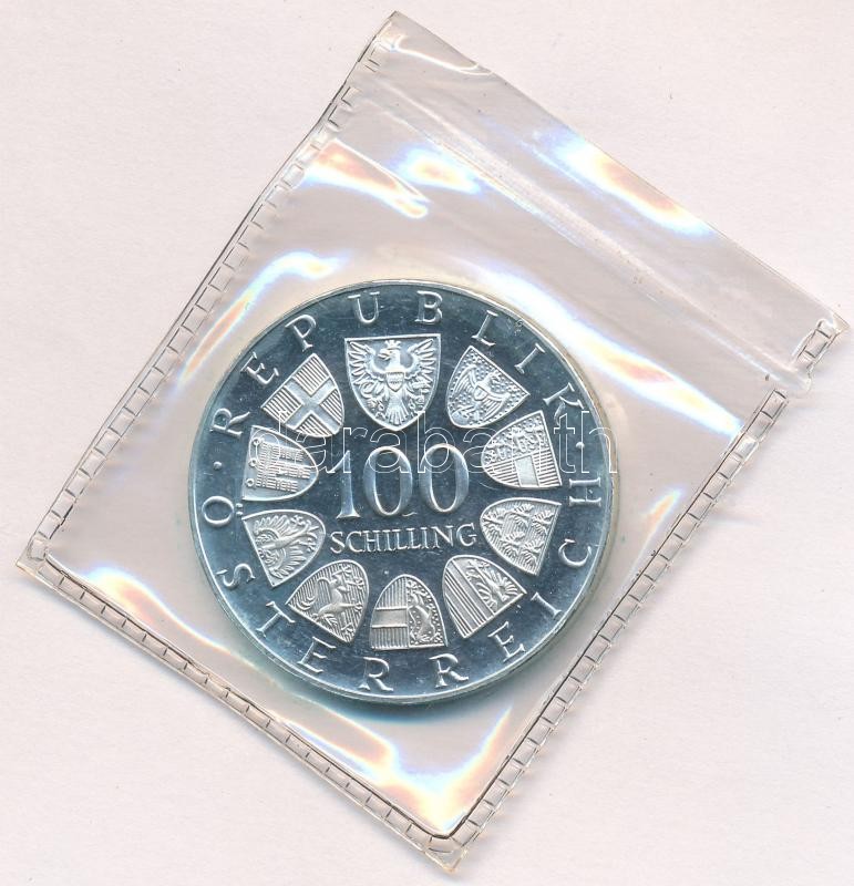 Ausztria 1976. 100Sch Ag "Innsbruck - XII. téli olimpia / Lesikló sánc" T:1- (PP) Austria 1976. 100 Schilling Ag "Winter Olympics Innsbruck / Ski take-off ramp" C:AU (PP) Krause KM#2929