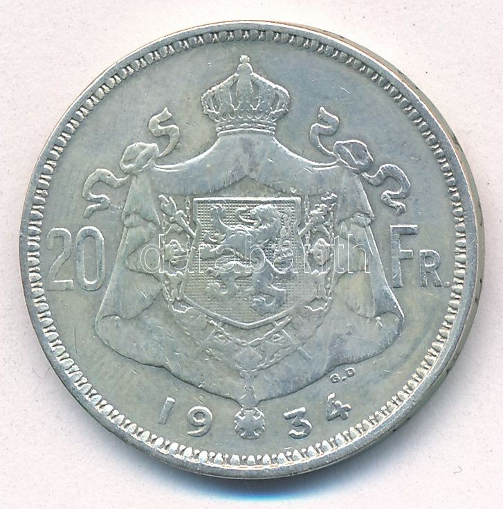Belgium 1934. 20Fr Ag "Albert" T:2-,3 Belgium 1934. 20 Franc... https://www.darabanth.com/de/412-Fernauktion/412.0/Numismatik/Weltweit-Munzen~1500014/Belgium-1934-20Fr-Ag-Albert-T2-3-Belgium-1934-20-Francs-Ag-Albert-CVF-F-Krause-KM231041~II2568156