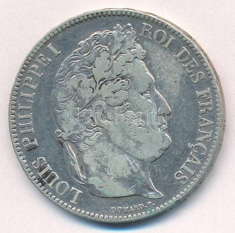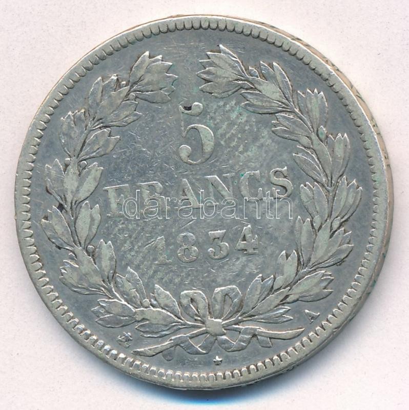 Franciaország 1834A 5Fr Ag "Lajos Fülöp" T:3 ph., patina France 1834A 5 Francs "Louis Philippe" C:F edge error, patina Krause KM#749