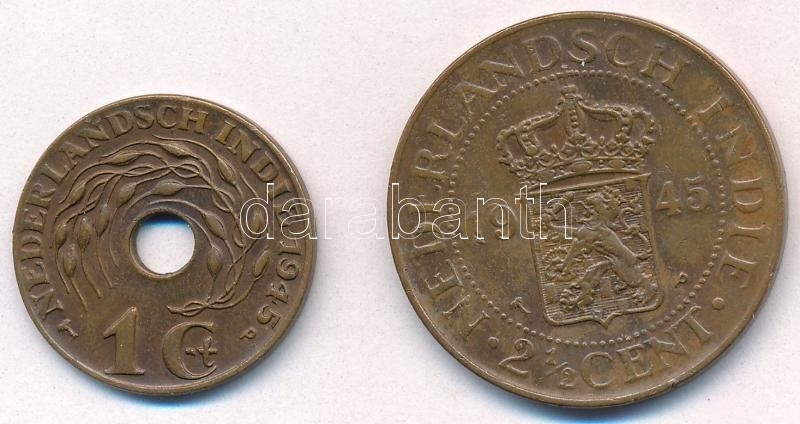Holland Kelet-India 1945P 1c sárgaréz + 1945P 2 1/2c sárgaréz T:2- Netherlands East Indies 1945P 1 Cent Brass + 1945P 2 1/2 Cents Brass C:VF Krause KM#317