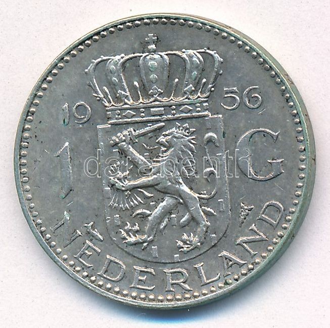 Netherlands 1956. ... https://www.darabanth.com/de/412-Fernauktion/412.0/Numismatik/Weltweit-Munzen~1500014/Hollandia-1956-1G-Ag-I-Julianna-T1--Netherlands-1956-1-Gulden-Ag-Juliana-CAU-Krause-KM2318~II2568261