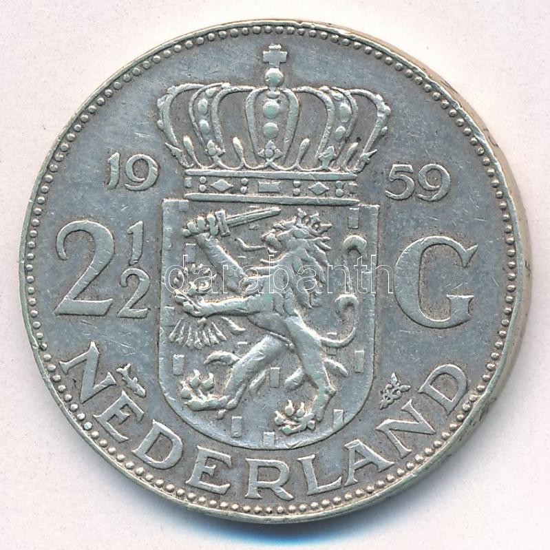 Netherlands 1959. 2 1/2 Gulden Ag "Juliana" C:XF,VF