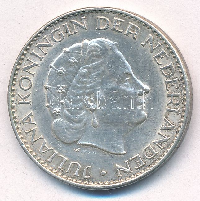 Netherlands 1963. 1... https://www.darabanth.com/de/412-Fernauktion/412.0/Numismatik/Weltweit-Munzen~1500014/Hollandia-1963-1G-Ag-I-Julianna-T2-Netherlands-1963-1-Gulden-Ag-Juliana-CXF-Krause-KM23184~II2568283