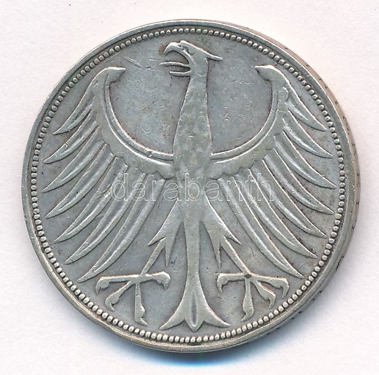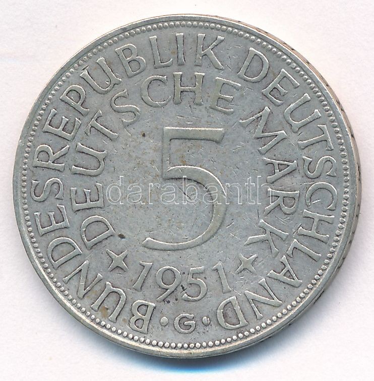 NSZK 1951G 5M Ag T:2- patina GFR 1951G 5 Mark Ag C:VF patina Krause KM... https://www.darabanth.com/de/412-Fernauktion/412.0/Numismatik/Weltweit-Munzen~1500014/NSZK-1951G-5M-Ag-T2-patina-GFR-1951G-5-Mark-Ag-CVF-patina-Krause-KM23112~II2570320